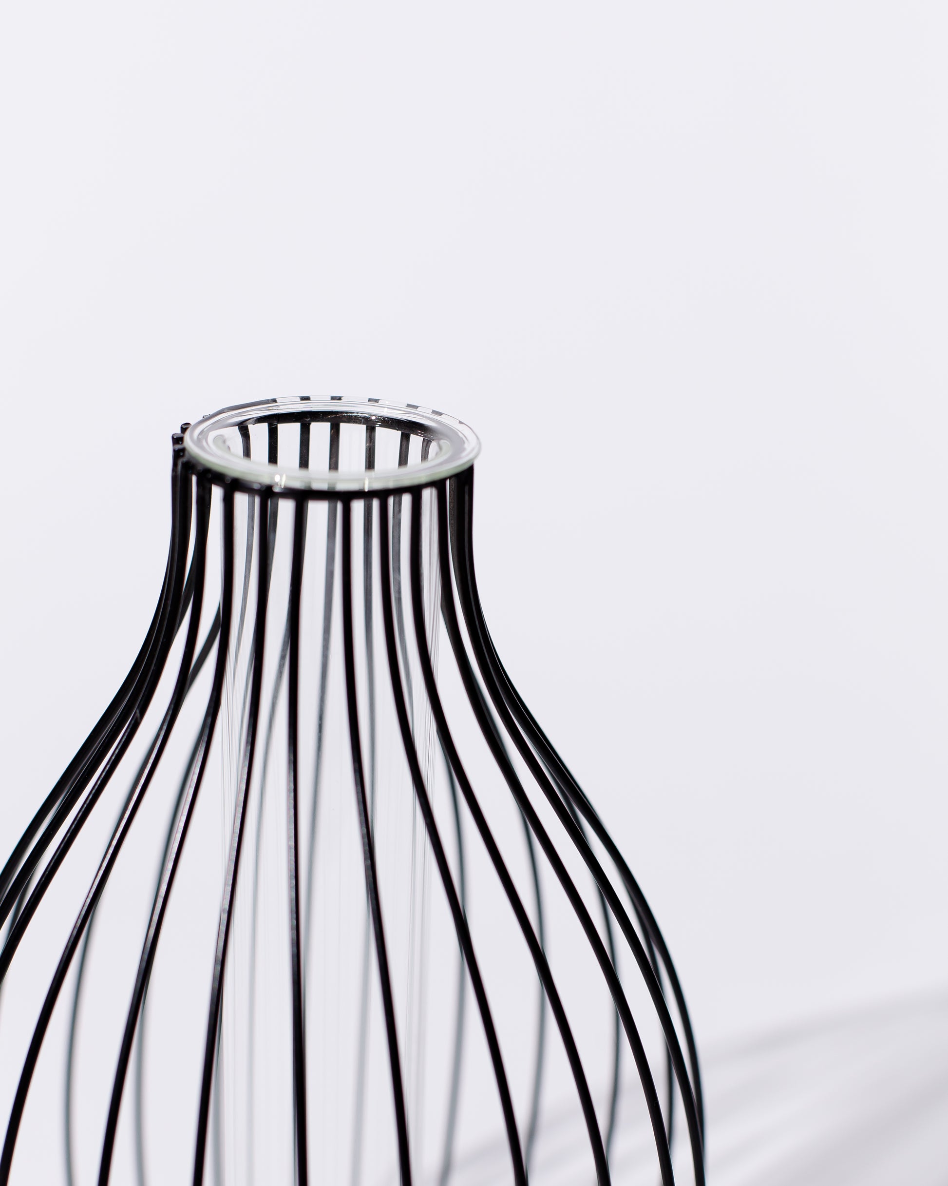 This vase is made with iron and is 24cm tall, 14cm wide, with a neck width of 4 cm.